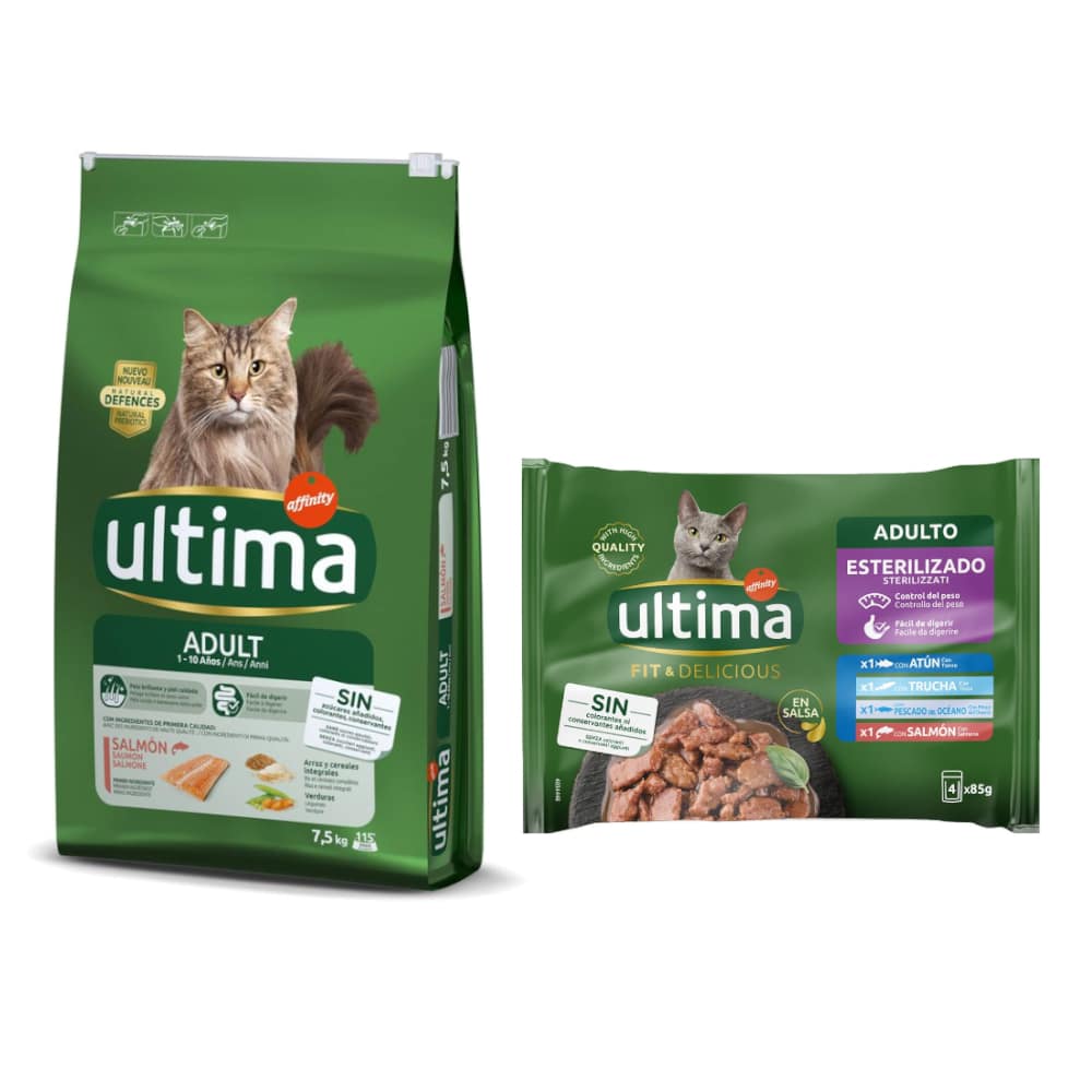 Njut av ett förmånligt specialerbjudande: Köp 7,5 kg Ultima Cat torrfoder och 48 x 85 g passande våtfoder till ett sparpris!