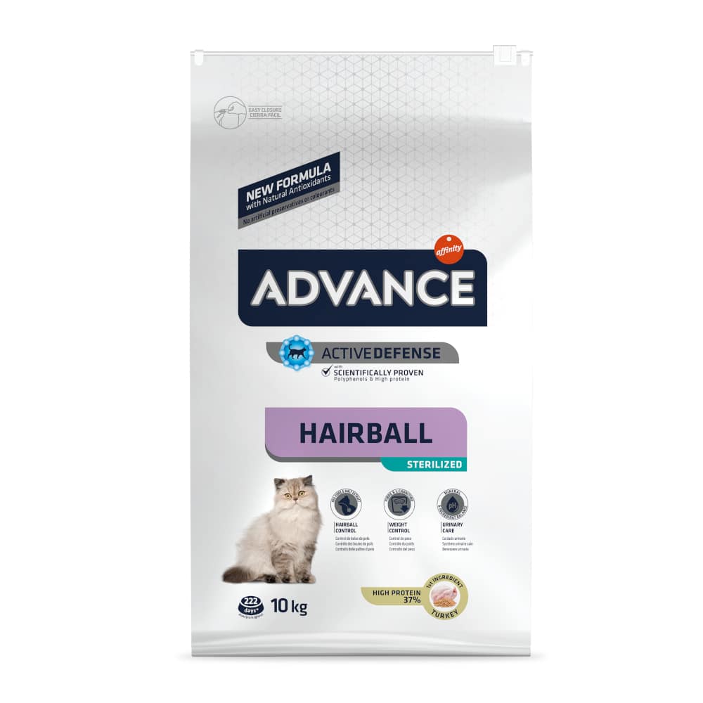 Advance Sterilized Hairball erbjuder en särskilt anpassad och näringsrik diet för att stödja hälsan och välbefinnandet hos steriliserade katter, med extra fokus på viktkontroll och förebyggande av hårbollsbildning.