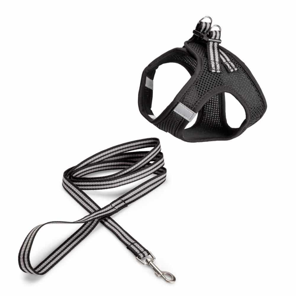 Basic Cat Sporty Sele + Koppel har god passform och är tillverkad av ett flexibelt meshtyg som andas.