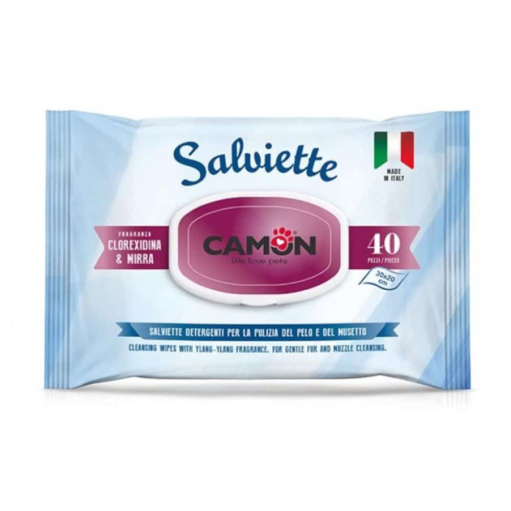 Camon våtservetter med klorhexidin och myrra är ett perfekt val för snabb och mild rengöring av päls, nos och öron hos både hundar och katter. De är särskilt utformade för att möta de känsliga behoven hos djurens hud och är lika användbara hemma som under resor.