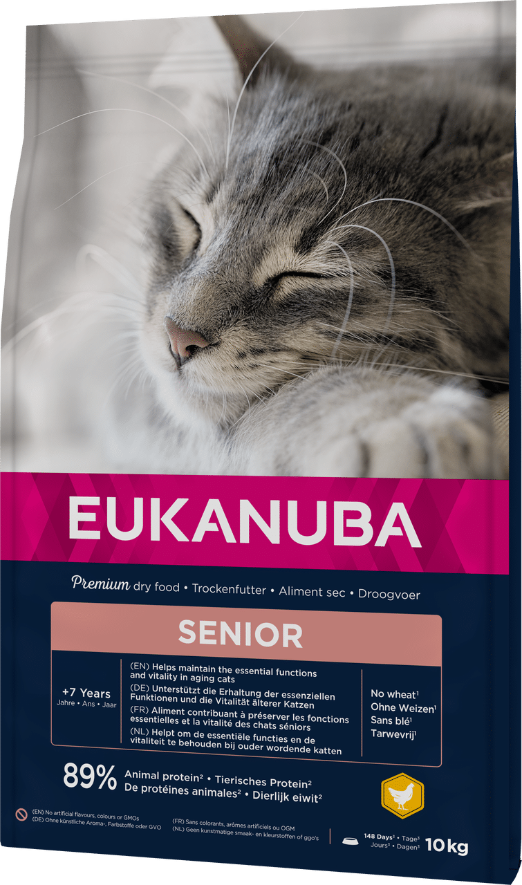 Eukanubas seniorkattfoder är skräddarsytt för att tillgodose de specifika näringsbehoven hos äldre katter som behöver extra stöd för att åldras hälsosamt. Fodret är berikat med taurin för att främja hjärthälsan och innehåller L-karnitin, en naturlig fettförbrännare som hjälper katten att bibehålla en stabil vikt trots lägre aktivitetsnivå.