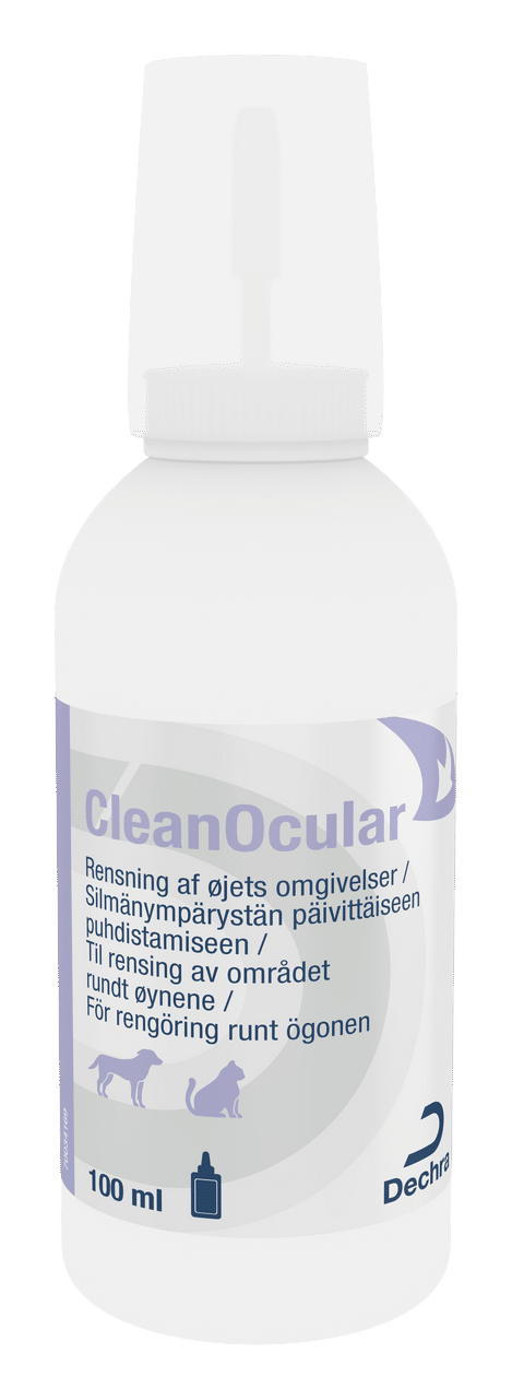 CleanOcular är en mild och pH-balanserad rengöringsvätska som effektivt tar bort smuts och bruna tårfläckar runt hundens eller kattens ögon. Den skonsamma formulan är speciellt framtagen för att rengöra och vårda huden utan att irritera.