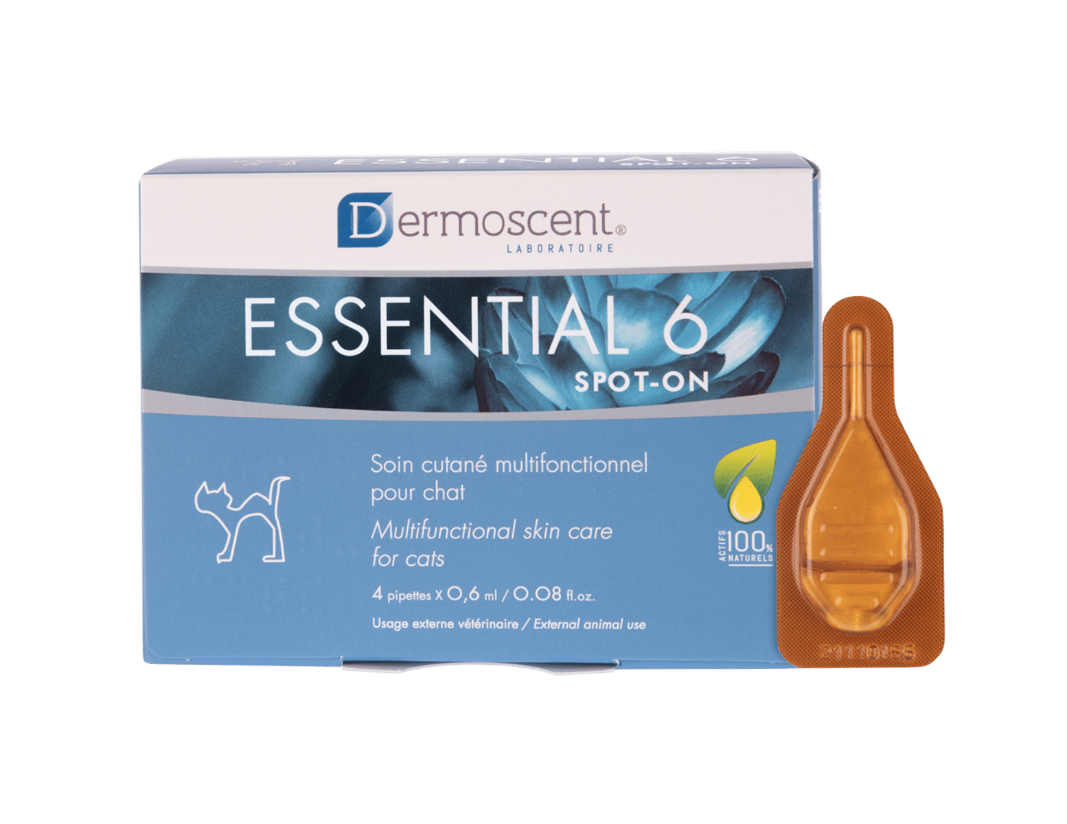 Essential 6® Spot-On är en multifunktionell hudvårdsbehandling i enkeldos som är särskilt utvecklad för katter med obalans i huden. Obalanser kan yttra sig i form av matt, spröd, torr eller fet päls, eller dålig lukt från huden. Produkten appliceras enkelt direkt på huden och erbjuder en effektiv, skonsam och naturlig lösning.