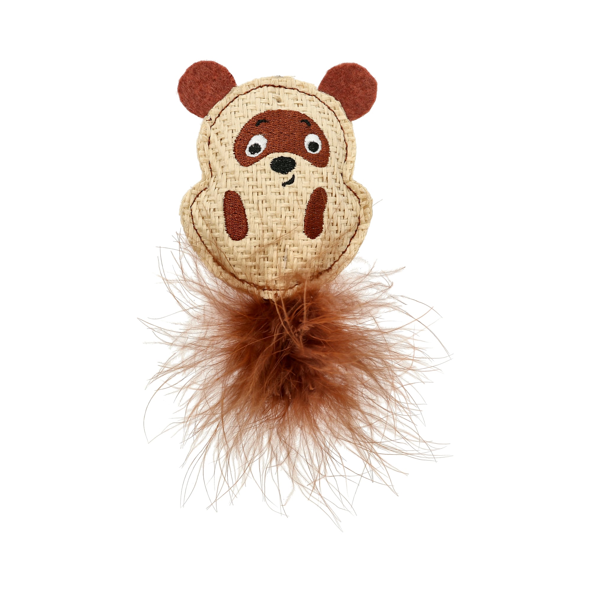 Söt björn i juteväv med fjäder. Innehåller kattmynta. Storlek: 7x15x2cm.