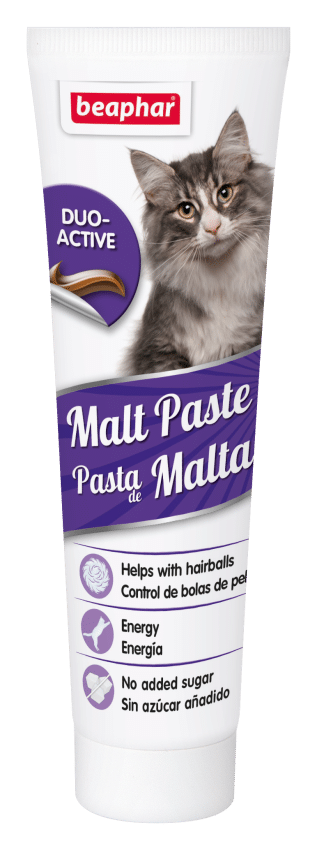 Maltpastan hjälper till att motverka hårbollar genom att kapsla in hårstrån och underlätta deras passage genom kattens matsmältningssystem.