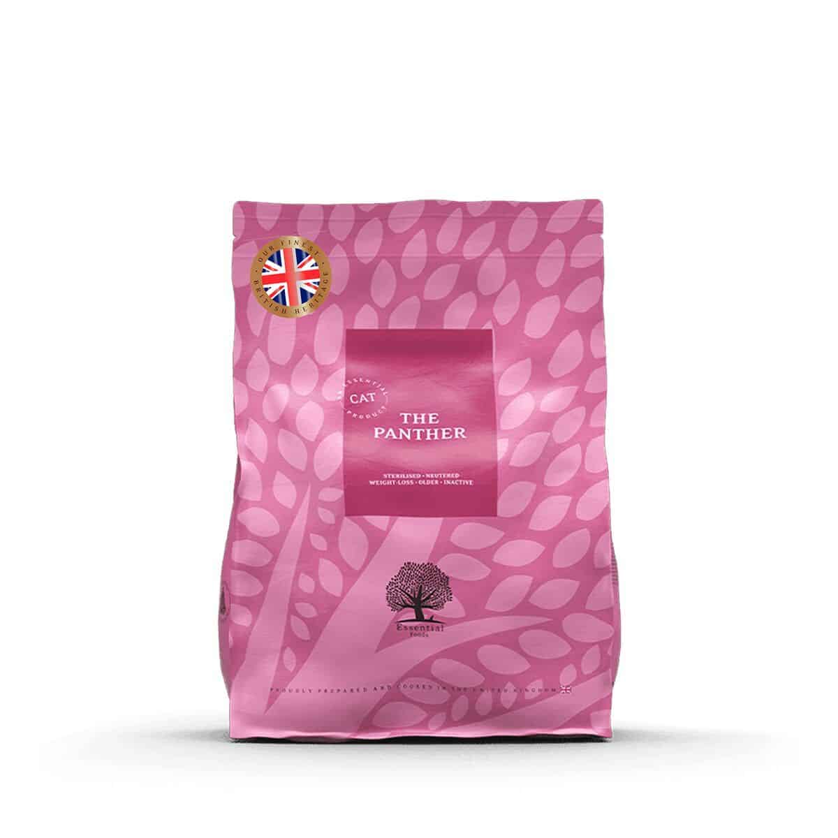 ESSENTIAL The Panther är ett komplett och spannmålsfritt helfoder anpassat för kastrerade och steriliserade katter, innekatter samt äldre katter. Receptet är framtaget för att stödja en sund vikt, balansera urinvägshälsan och ge en optimal näringsprofil för katter med lägre aktivitetsnivå.