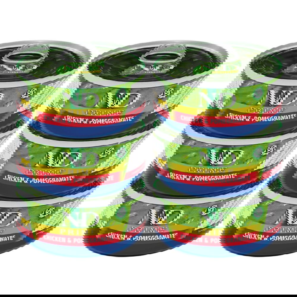 Farmina N&D Cat Prime Chicken & Pomegranate 6 × 70 g är ett premiumvåtfoder skapat för att möta den vuxna kattens naturliga näringsbehov. Med hela 45 % kycklingfilé och näringsrika kycklingben får katten ett mycket lättsmält och artanpassat protein. Tillskott av 4 % granatäpple ger dessutom naturliga antioxidanter som stödjer immunförsvaret.