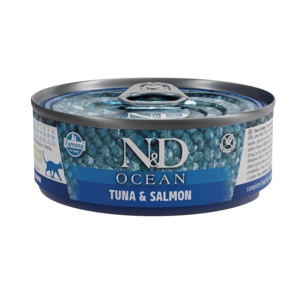 Ge din katt en smakfull och näringsrik måltid med Farmina N&D Cat Ocean Tuna & Salmon – en perfekt kombination av smak och hälsa!