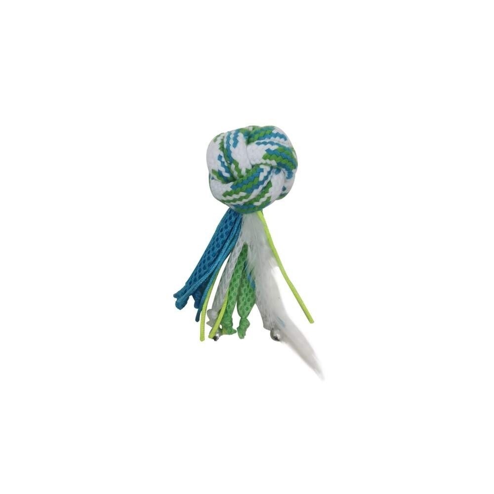 Repbollen är knuten och har en lång svans av tygremsor, snören och fjädrar som kommer att locka din katt till massor av lek. Bollen innehåller dessutom kattmynta för extra attraktion.