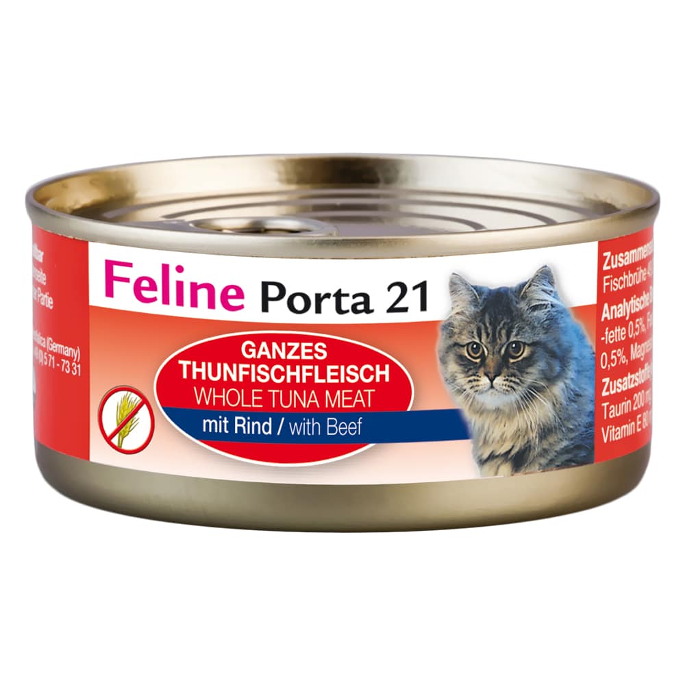Feline Porta 21 våtfoder är förstärkt med vitaminer och mineraler för att komplettera kattens näringsprofil. Taurin, en essentiell aminosyra, är tillsatt för att stödja kattens syn och hjärtfunktion.