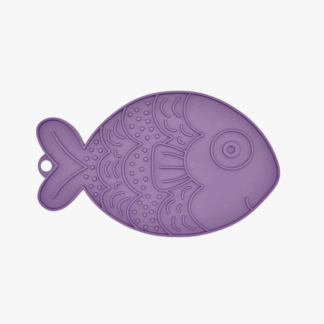 Fishka Slickmatta från Fiboo är ett enkelt men effektivt hjälpmedel som ger din hund eller katt både sysselsättning och sinnesro. Genom att bre ut blötmat, färskfoder eller snacks på mattan får djuret använda tungan för att slicka upp maten. Det ger mental stimulans, stärker munhälsan och skapar en lugnande effekt i stressiga situationer.