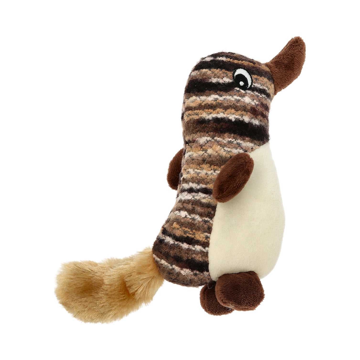 Stor och rejäl kattleksak. Kroppen är av olika fleecmaterial.Svansen är en härlig plysch. Innehåller kattmynta. Storlek: 12x7x5cm.