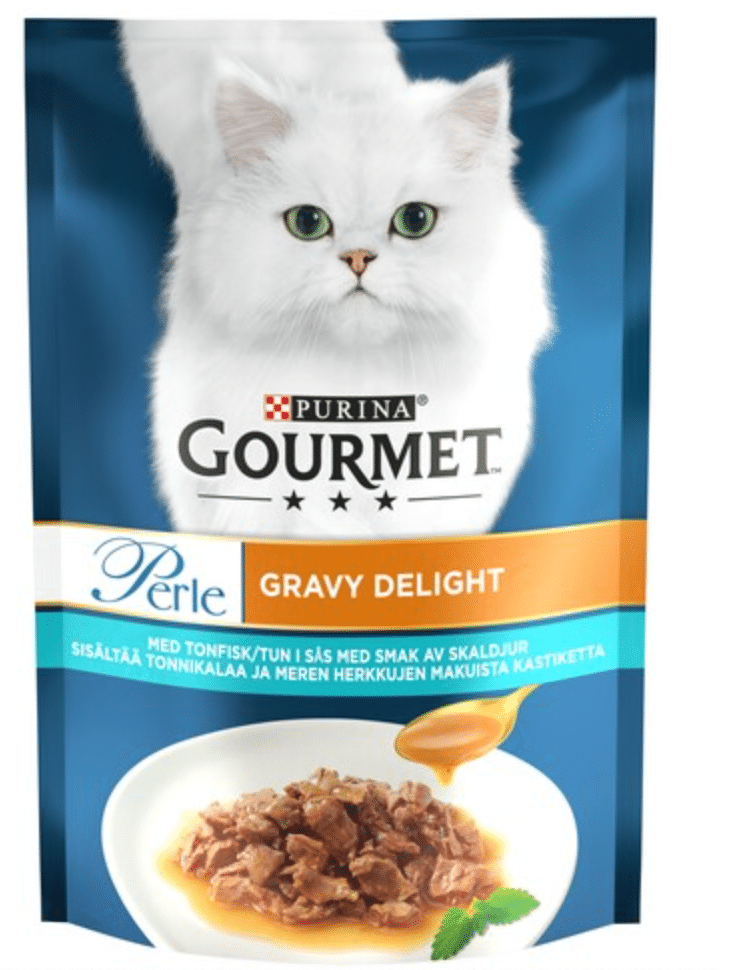 Introduktion till en smakrik matupplevelse för din katt med Gourmet®Perle Minifiléer Gravy Delight från Purina. Denna exklusiva Connoisseurs Collection erbjuder en rad tonfiskbaserade måltider, designade för att tillfredsställa även de mest kräsna katter.