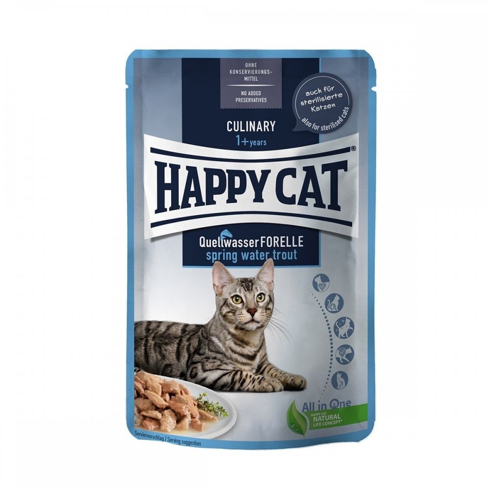 Detta näringsrika våtfoder är särskilt anpassat för vuxna katter, inklusive de som genomgått sterilisering eller kastration, vilket gör det till ett perfekt val för kattägare som vill ge sina husdjur det allra bästa. Med Happy Cat Culinary Springwater Trout kan du vara säker på att din katt får i sig en måltid som är både näringsrik och skonsam mot magen.
