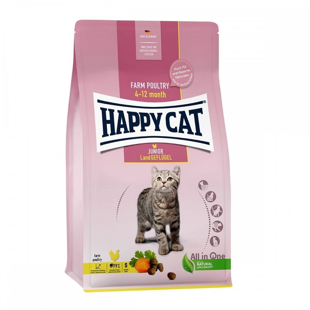 Happy Cat Junior Farm Poultry erbjuder en näringsrik och välsmakande måltidslösning, designad för att stödja din växande katts utveckling från kattunge till vuxenlivet.