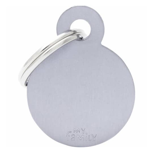 Denna ID-bricka i cirkelform och grå färg är perfekt i storlek för att hänga på kattens halsband. Den är lätt och smidig, utan att vara för stor eller tung. Vi graverar den text du väljer – vi rekommenderar att ha kattens namn på ena sidan och ditt telefonnummer på den andra. Detta gör det enkelt för den som hittar din katt att snabbt kunna kontakta dig.