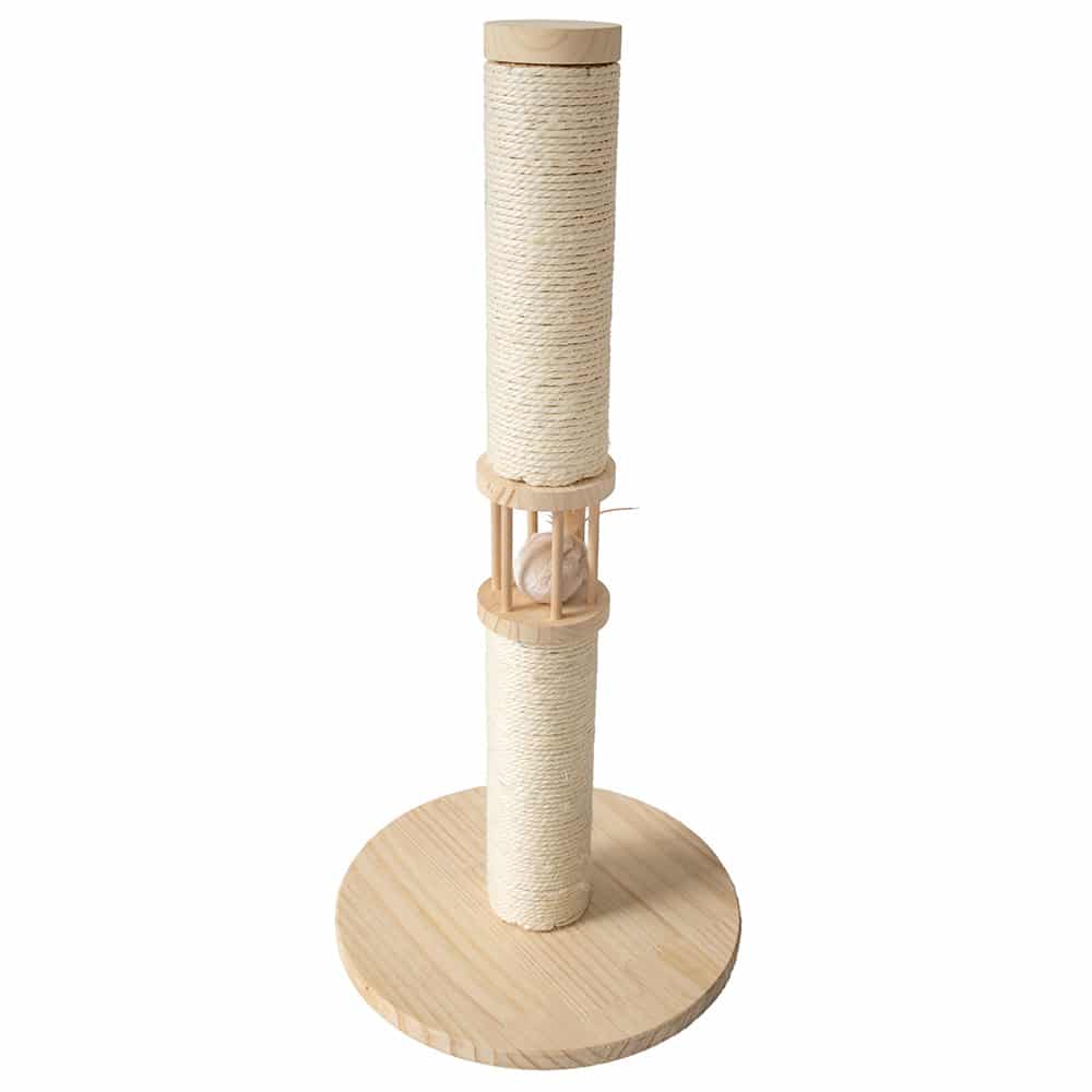 Klösstammarna är inlindade i sisal och därför utmärkta när katten vill vässa klorna och sträcka ut ryggen ordentligt. Perfekt för alla katter som gillar att klösa vertikalt.