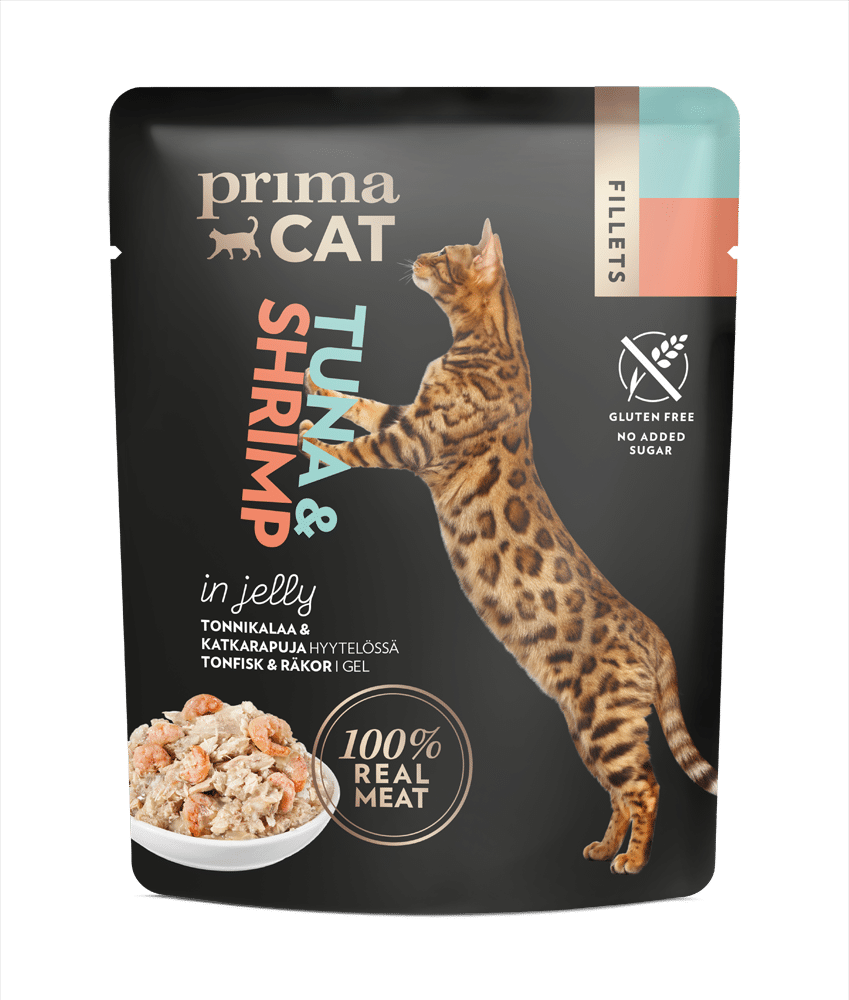 - Huvudingredienser: Tonfisk (55%), Räkor (4%)