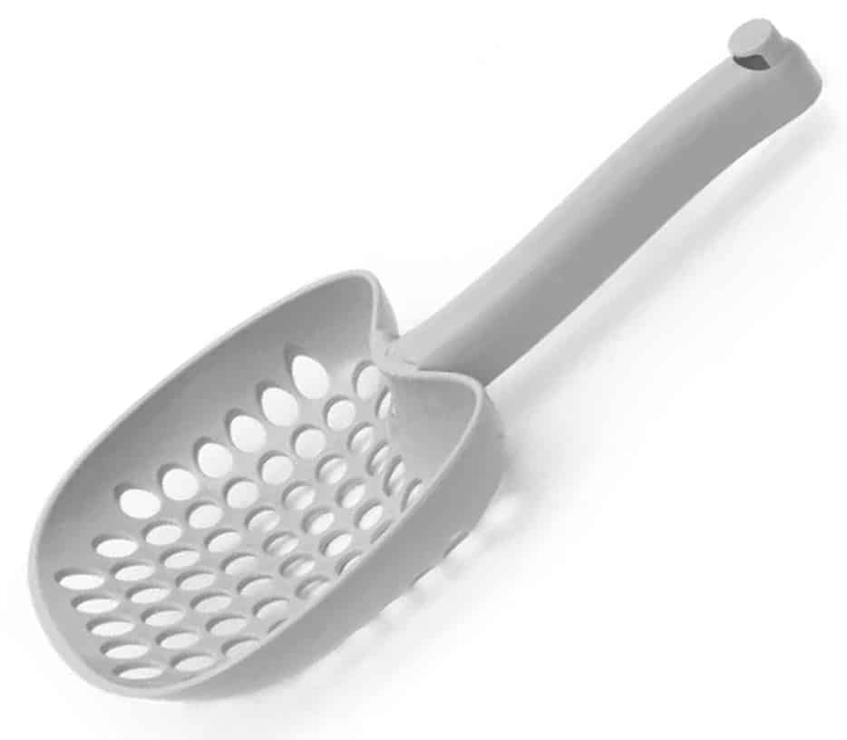 En riktigt bra spade med stora öppningar, speciellt utvecklad för naturliga strö. Naturliga strösorter kan både ha en annan struktur, grovlek samt att de ofta är lättviktiga. Catit PIXI Cat Litter Scoop klarar denna uppgift snabbt tack vare sina stora öppningar som är utformade för enkel siktning, samtidigt som de stora klumparna stannar kvar i spaden.