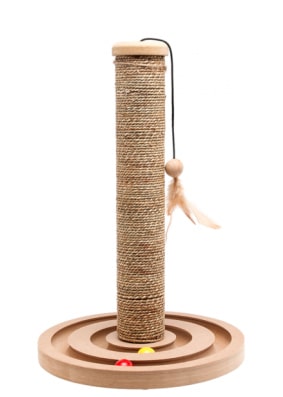 En fin aktiveringsleksak för din katt som kombinerar flera aktiviteter i ett. Den har en klösvänlig stolpe klädd med seagrass för klösmöjlighet och en rund platta i botten med en inbyggd kulbana för extra lek och stimulans.