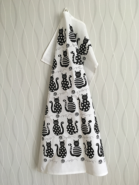 Denna charmiga kökshandduk pryds av ett härligt kattmotiv från AnnEko design. Tillverkad i en blandning av 50% bomull och 50% linne, är handduken både slitstark och tvättäkta i 60°C. Tryckt med vattenlöslig och miljövänlig färg, blir den en hållbar kökskompis i många år.
