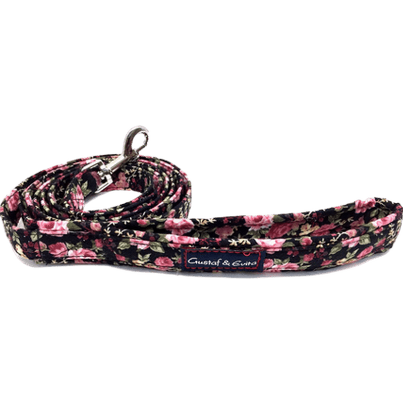 G&E Koppel Textil Svart Ros från Gustaf & Evita är ett mjukt och skönt koppel i svart med ett diskret och vackert rosmönster. Kopplet är 180 cm långt och har en silverfärgad hake som kompletterar det stilrena uttrycket.