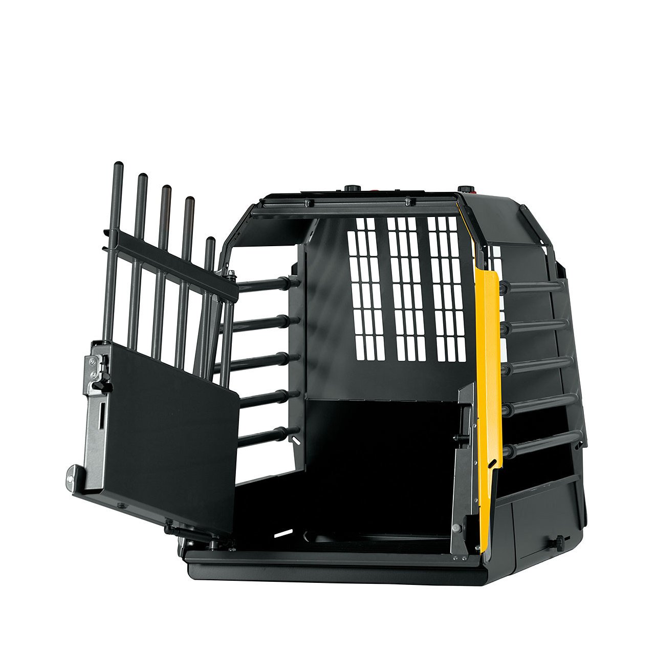 Vid en eventuell kollision komprimeras Variocage för att absorbera kraften och minska risken för skador på både djur och passagerare.