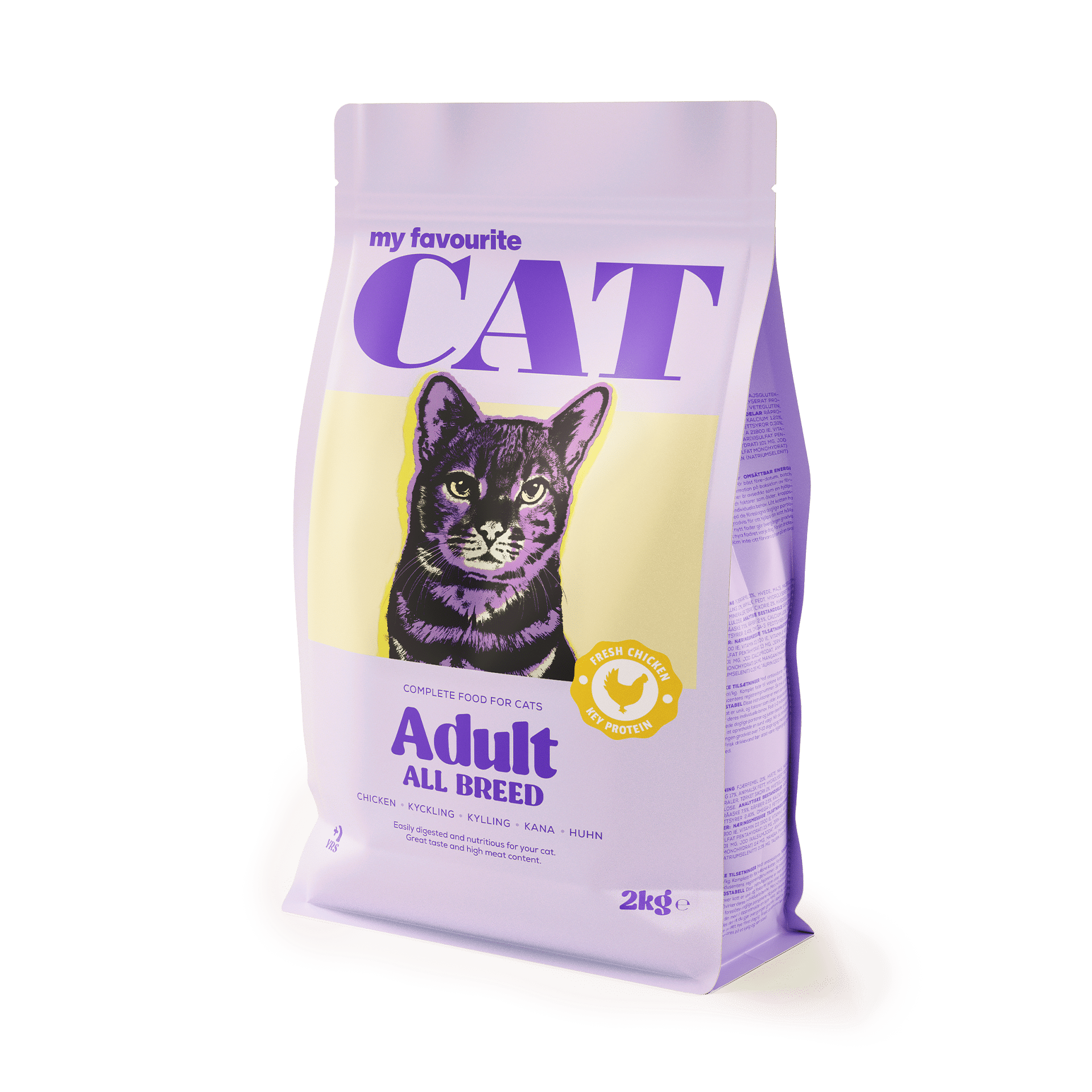 Utforska My Favourite Cat Adult All Breed, ett komplett foder designat för normalaktiva katter från 1 års ålder. Med färsk kyckling som en av huvudingredienserna får din katt en smaklig och näringsrik måltid varje gång.