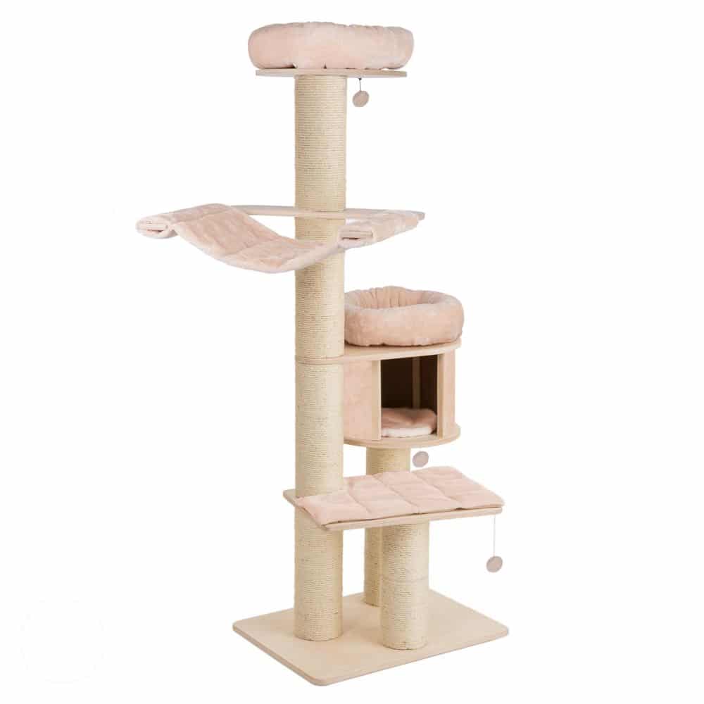 - Sisalstolpar: Extra tjocka och perfekta för att klättra, sträcka sig och vässa klor.