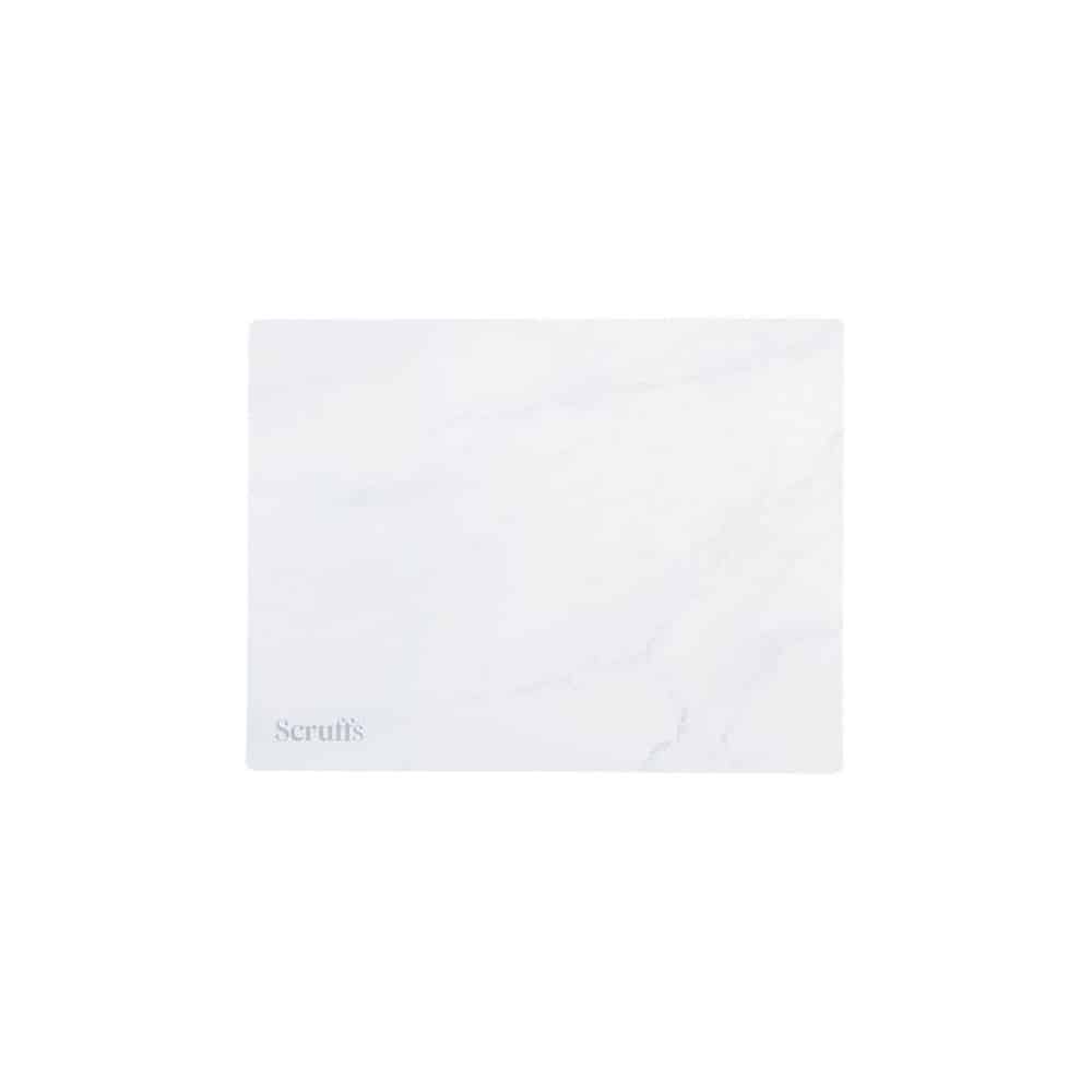 Scruffs underlägg i vit marmordesign är en stilren lösning för att skapa en ren och snygg matplats för din hund eller katt. Med sin generösa storlek på 40 x 30 cm passar det perfekt under en eller flera matskålar.