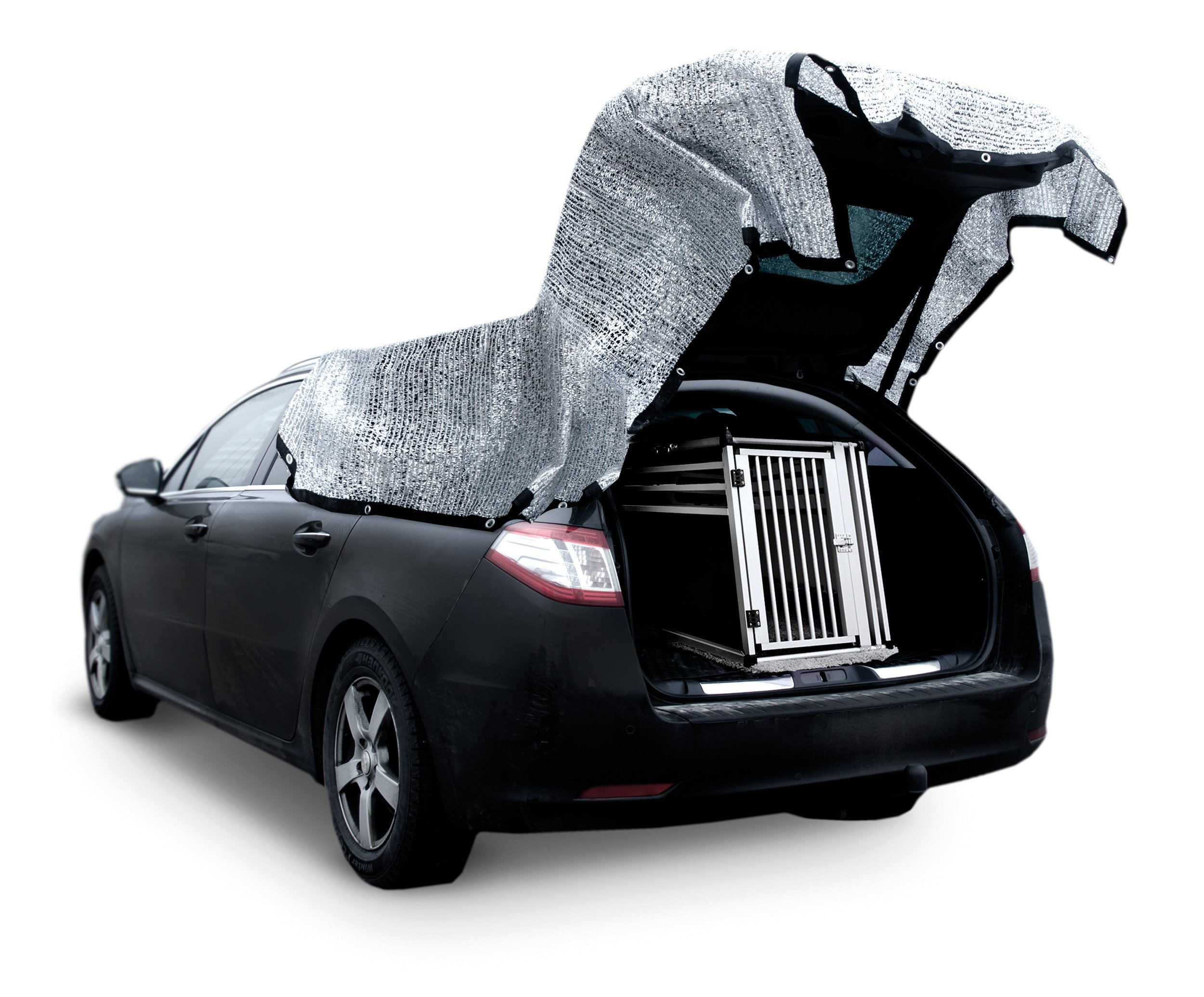 Silverduken är perfekt att använda över katt- eller hundburen när ni är på resande fot. Den stora varianten (4×4 meter) kan också användas för att täcka bilen när ni parkerar, eller för att skapa skugga på uteplatsen eller andra platser där solskydd behövs.