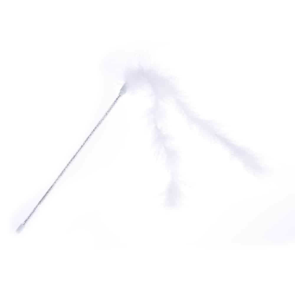 Den silverglittrande staven och de två fjädersvansarna gör fjädervippan visuellt tilltalande och stimulerar kattens naturliga jaktinstinkt. De oförutsägbara rörelserna under leken utmanar kattens smidighet och skicklighet, vilket håller den sysselsatt i timmar.
