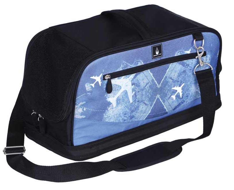 Transportväska från märket Nobby, specialdesignad för att flyga med katt eller liten hund inne i kabinen. Väskan är tillräckligt liten för att få plats ”som handbagage” under flygsätet framför dig, vilket är ett krav när man flyger med husdjur.