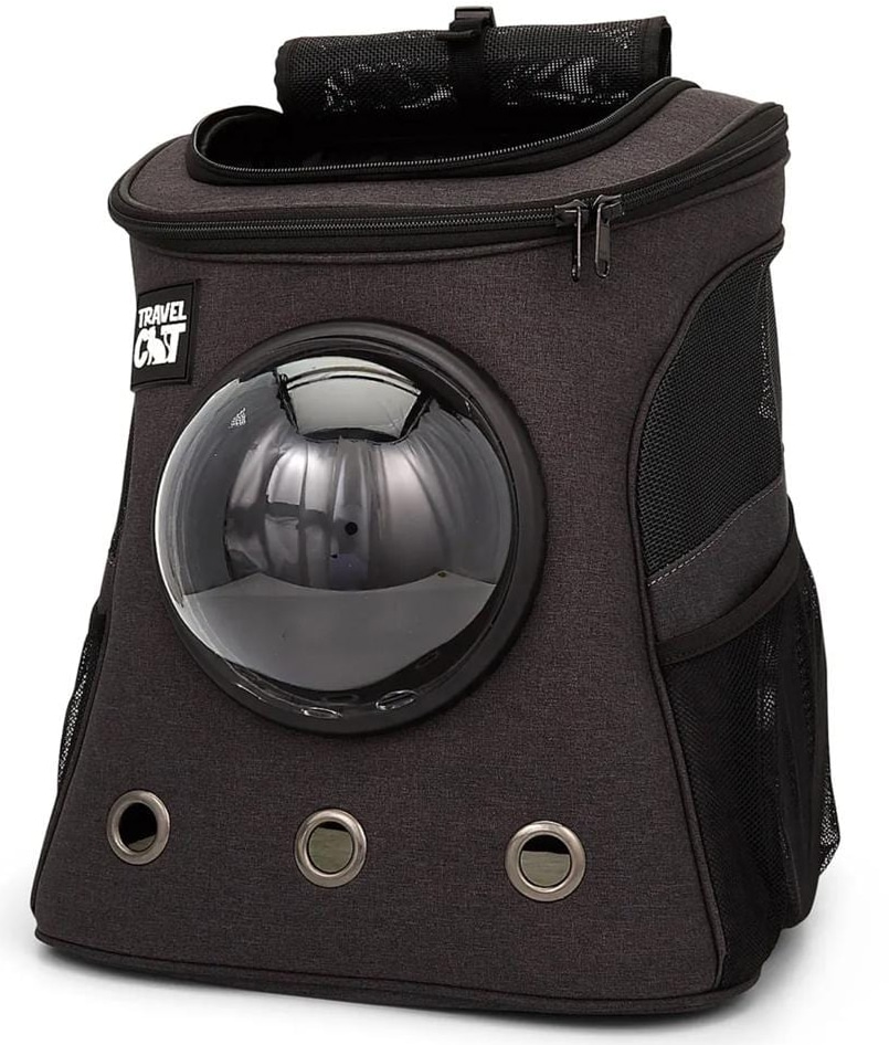 ”The Fat Cat backpack” från Travel Cat är en stabil ryggsäck för katt eller liten hund som vill följa med på äventyr. Ryggsäcken erbjuder utmärkt ventilation med lufthål i nederkanten, mesh på sidorna och i locket, samt möjligheten att välja mellan mesh på framsidan eller den populära ”bubblan” som ger katten bättre sikt.
