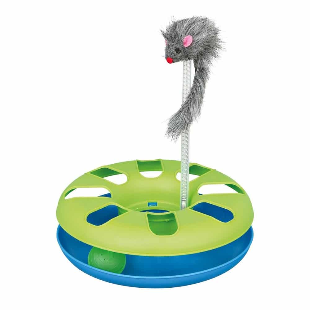Trixie Crazy Circle Mus är en underhållande aktiveringsleksak som passar alla katter. Leksaken har en mus fäst på en böjbar fjäderstav, samtidigt som det finns en boll som katten ska försöka fånga. Utmaningen blir större när musen ”övervakar” leken!