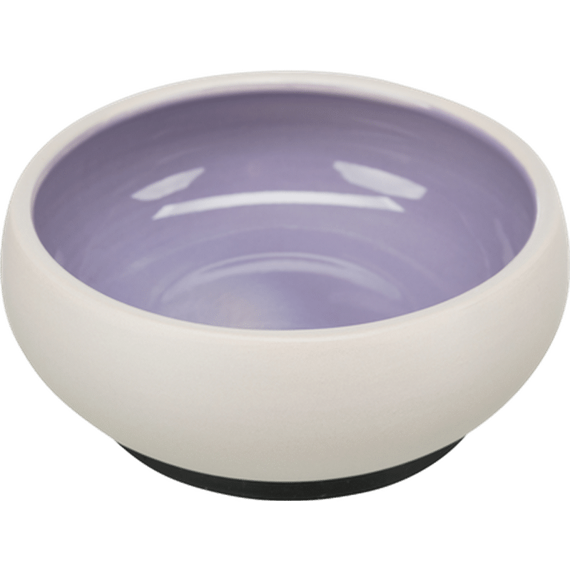 Skålen är utrustad med en gummiring under botten, vilket förhindrar att skålen glider över golvet, så att din katt kan äta eller dricka utan störningar.