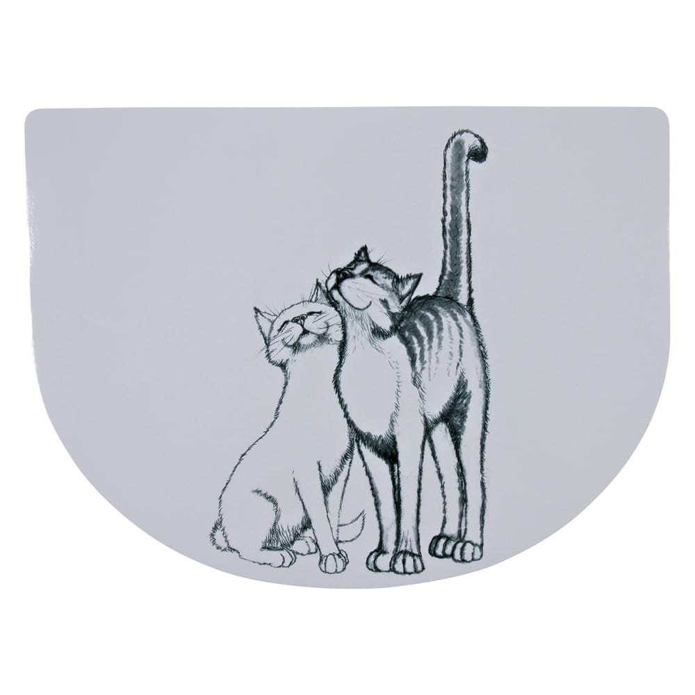 Underlägget har rätt storlek för katter som behöver utrymme när de äter och förhindrar svårborttagna fläckar på dyra trä- och parkettgolv.