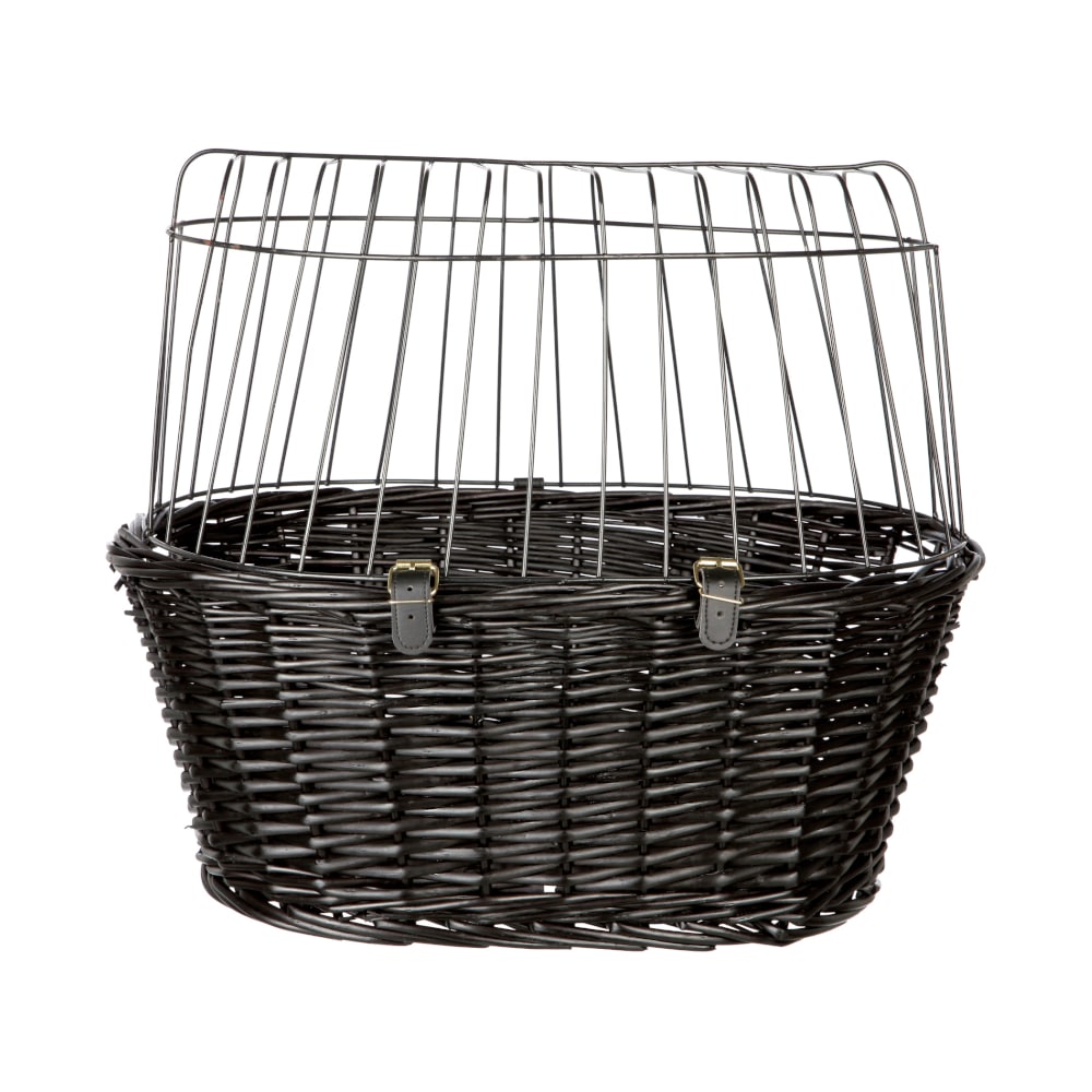 Den svarta videkorgen fästs på styret, så du kan alltid ha ögonkontakt med din hund. Ett stabilt plastöverdraget galler fästs med bältesspännen vid korgen, vilket gör att din hund sitter säkert och inte kan hoppa ut, samtidigt som den har en perfekt utsikt under hela cykelturen.