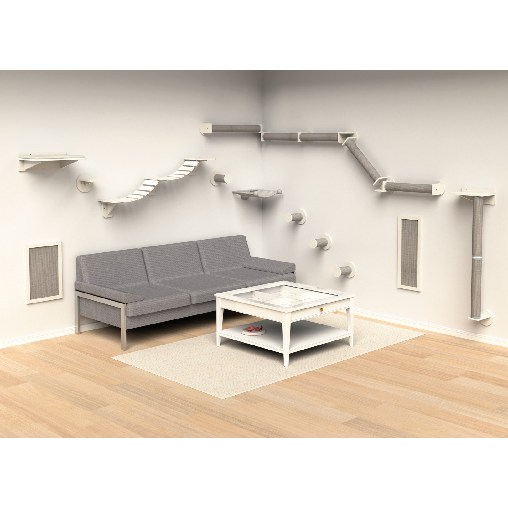 Setet är enkelt att skruva fast på väggen och kan kombineras med andra klätterdelar för att bygga ett unikt klätterlandskap som utökar din katts livsmiljö och ger den en spännande lekplats inomhus.