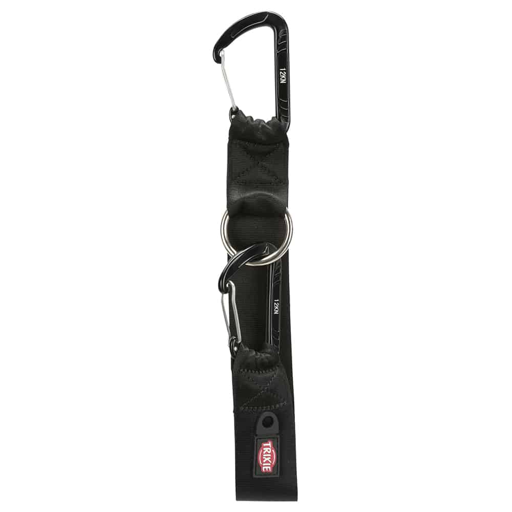 Adaptern har flera fästalternativ och kommer med en karbinhake som gör det lätt att koppla ihop med en passande bilsele. På så sätt sitter djuret säkert i bilen – och du följer gällande säkerhetsregler.