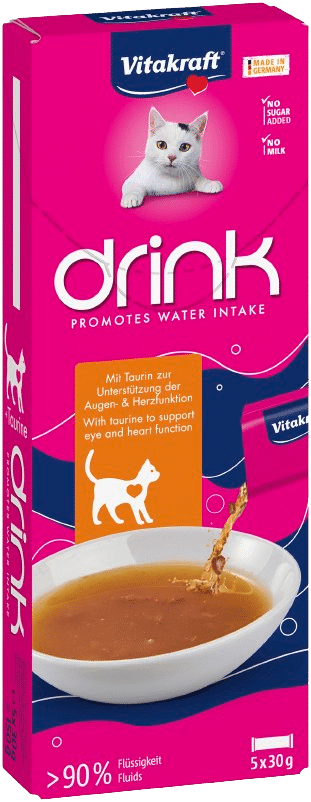 Kattens vätskebalans är avgörande för dess hälsa. Vitakraft® Drink stöder en positiv dryckesrutin och ser till att katten får i sig rätt mängd vätska på ett smakfullt sätt.